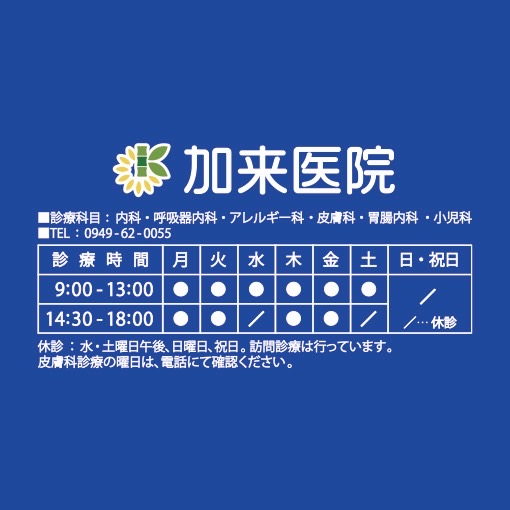 ホームページの診療時間から上記の診療時間に変更なっております。お間違えない様にお願い致します。